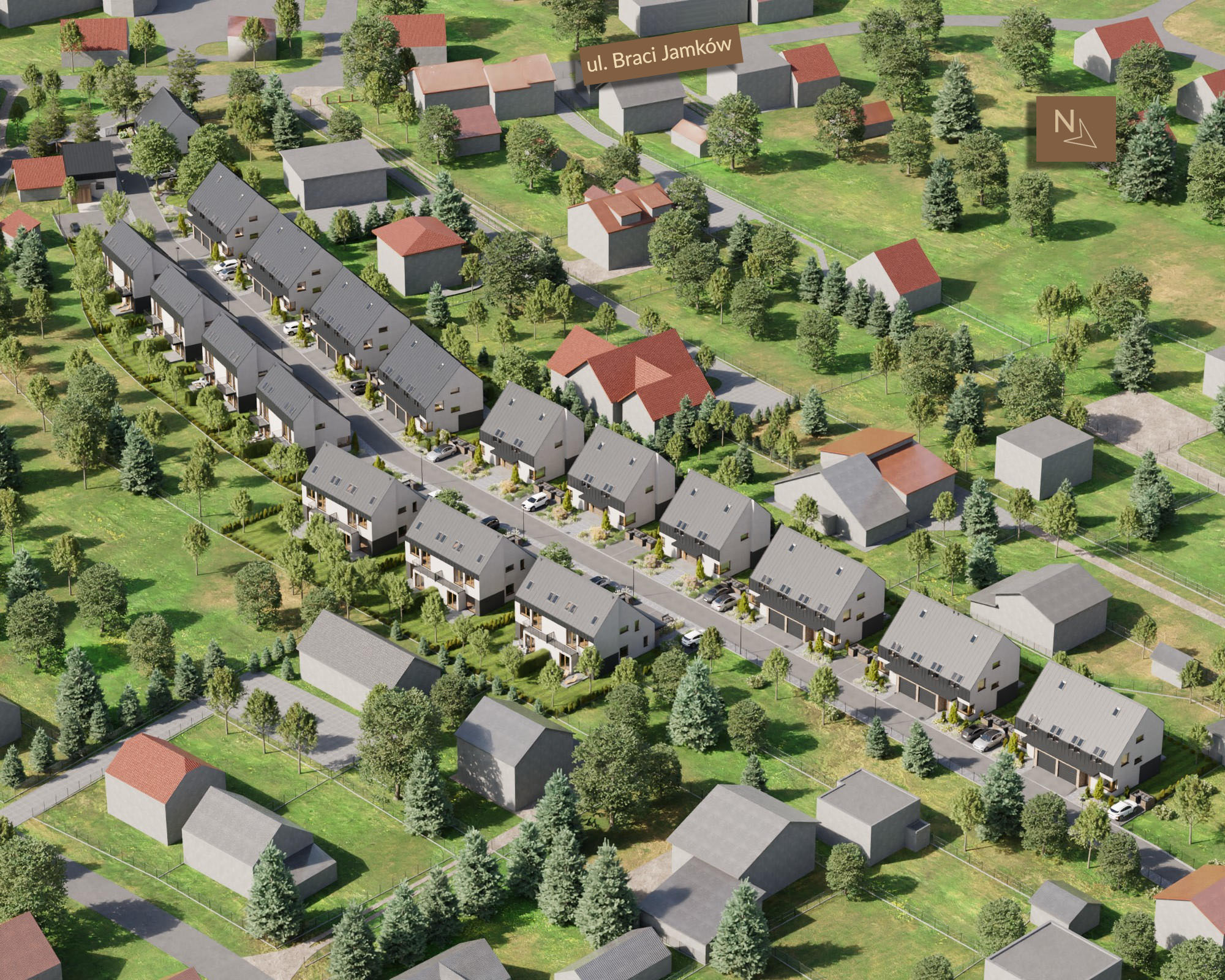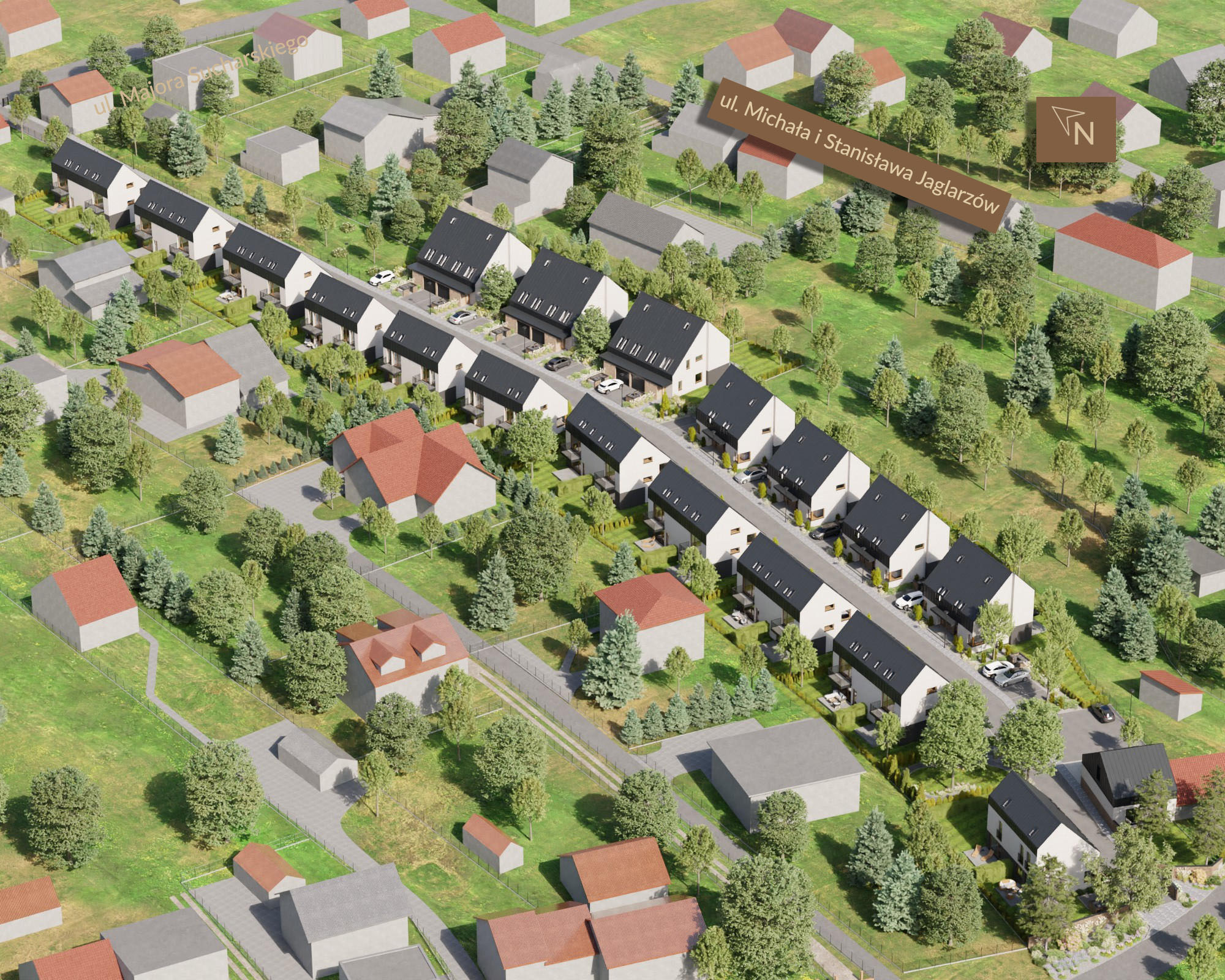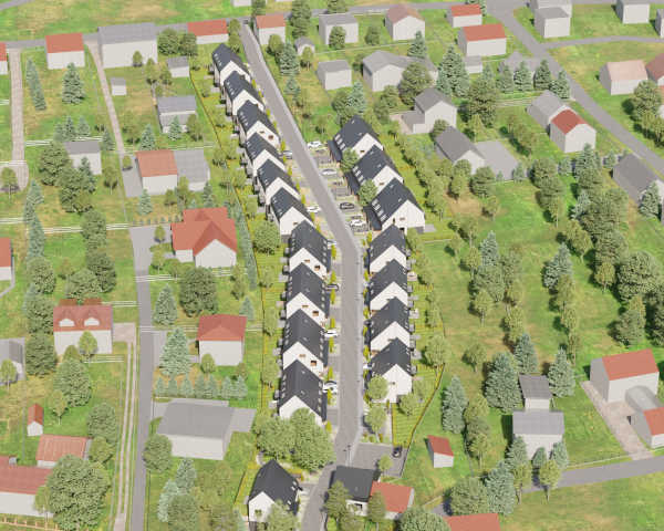 Do każdego domu przynależą miejsca postojowe, więc nie będziesz mieć żadnych problemów z parkowaniem samochodu. Zwiń ∧