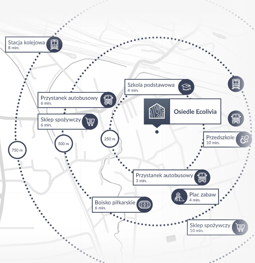 Ecolivia to kameralne, zamknięte i oświetlone osiedle, które obejmuje 17 budynków jednorodzinnych dwulokalowych.Rozwiń ∨